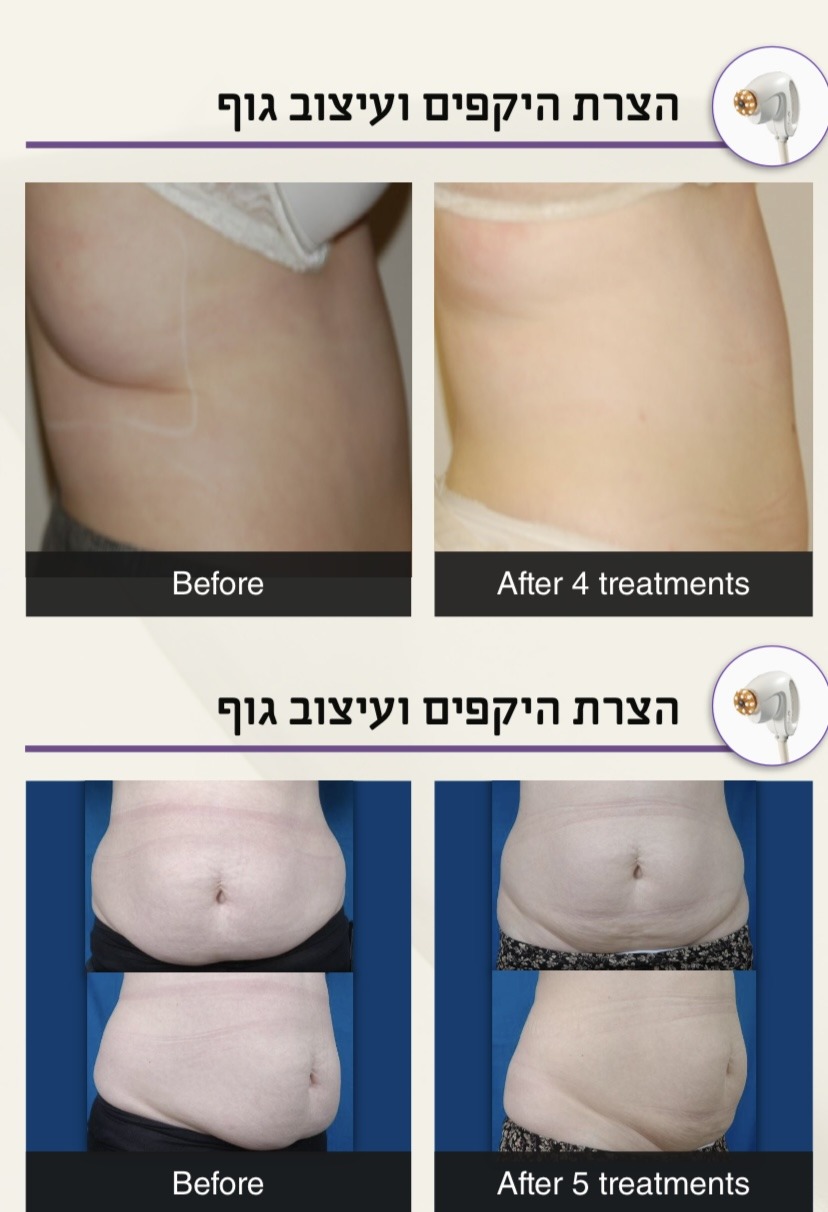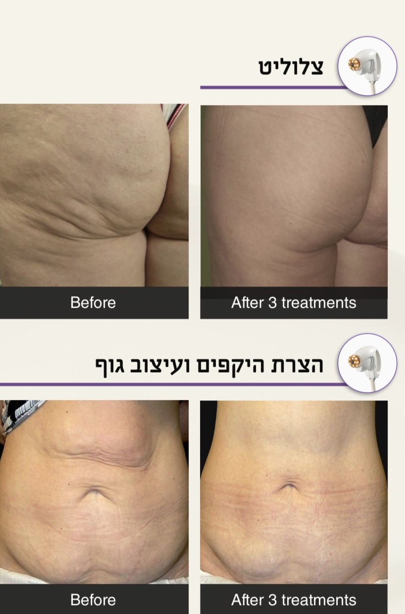שקיפות מלאה ומראה תוצאות מדהימות. התכנית מיועדת לחיטוב הגוף, הצרת היקפים, מיצוק העור,הפחתת צלוליט וסימני מתיחה. הטיפולים אינם פולשניים, אינם כרוכים בכאבים ולא גורמים לשינויים בלתי הפיכים בגוף.